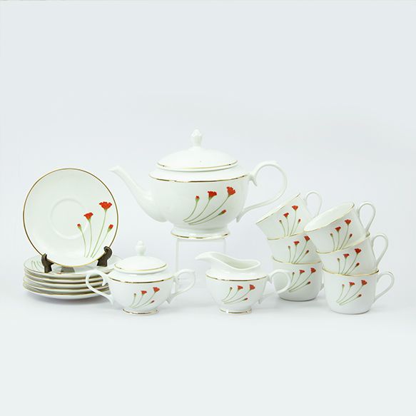 Meticulously fashioned from premium porcelain, each element boasts opulence with a delicate 24kt gold accent. What sets this set apart is its unwavering commitment to purity – entirely devoid of animal bone ash, Lead, and Cadmium. Immerse yourself in a pure and elegant tea experience with every sip.
